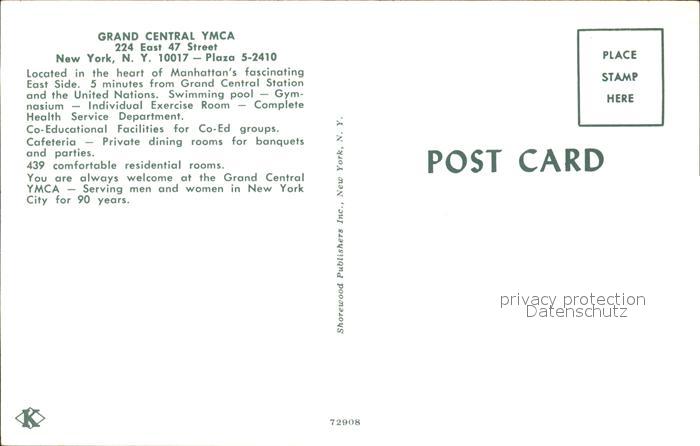 72118730 New York City Grand Central YMCA Hotel postalisch nicht gelaufen Erhaltung siehe scans KatCode: 14140340000000