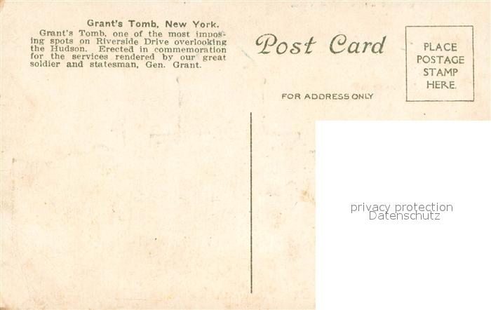 73681506 New York City Grant’s Tomb postalisch nicht gelaufen Erhaltung siehe scans [WerneD78] KatCode: 14140340000000