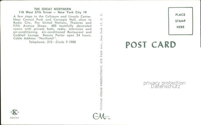 72477415 New York City Great Northern Hotel Lounge postalisch nicht gelaufen Erhaltung siehe scans KatCode: 14140340000000