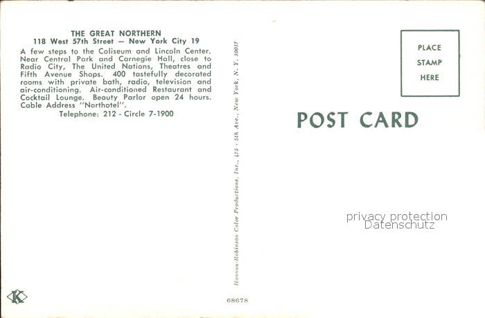 72415856 New York City Great Northern Hotel postalisch nicht gelaufen Erhaltung siehe scans KatCode: 14140340000000
