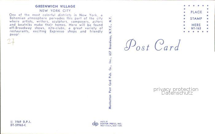 11688419 New York City Greenwich Village postalisch nicht gelaufen Erhaltung siehe scans KatCode: 14140340000000