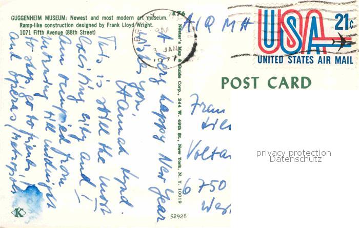 72904671 old postcard New York City Guggenheim Museum modern architecture postalisch gelaufen Erhaltung siehe scans [FriedD77] KatCode: 14140340000000