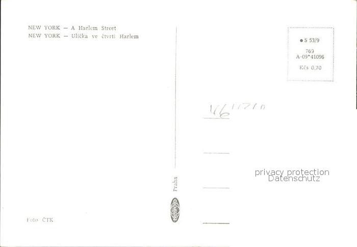 72077052 New York City Harlem Street postalisch nicht gelaufen Erhaltung siehe scans KatCode: 14140340000000