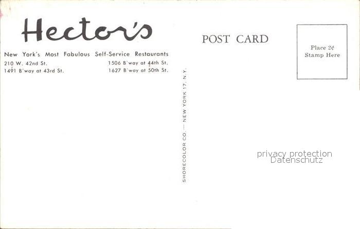 72246377 New York City Hectors Restaurant postalisch nicht gelaufen Erhaltung siehe scans KatCode: 14140340000000