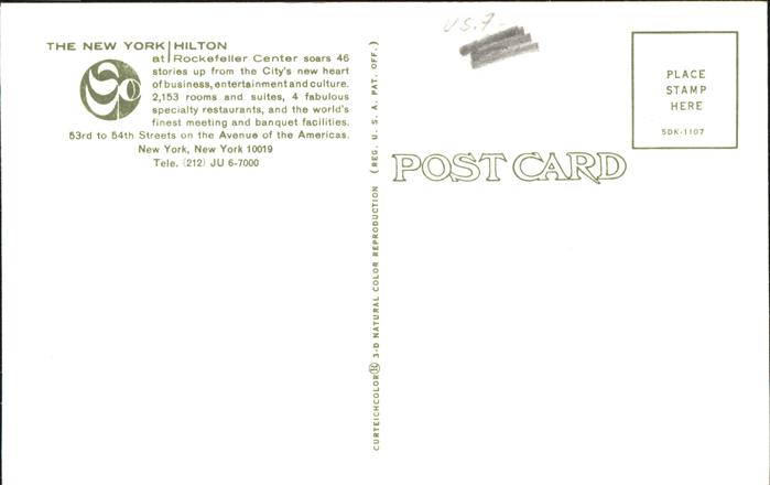 11491608 New York City Hilton Hotel at Rockefeller Center postalisch nicht gelaufen Erhaltung siehe scans KatCode: 14140340000000