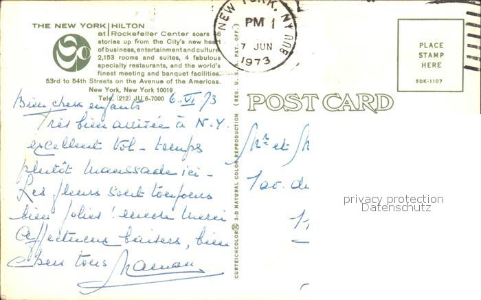 72249370 old postcard New York City Hilton Hotel Rockefeller Center postalisch gelaufen Erhaltung siehe scans KatCode: 14140340000000