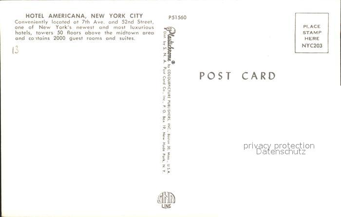 11688414 New York City Hotel Americana postalisch nicht gelaufen Erhaltung siehe scans KatCode: 14140340000000