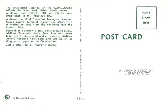 73333576 New York City Hotel Commodore postalisch nicht gelaufen Erhaltung siehe scans [FriedD77] KatCode: 14140340000000
