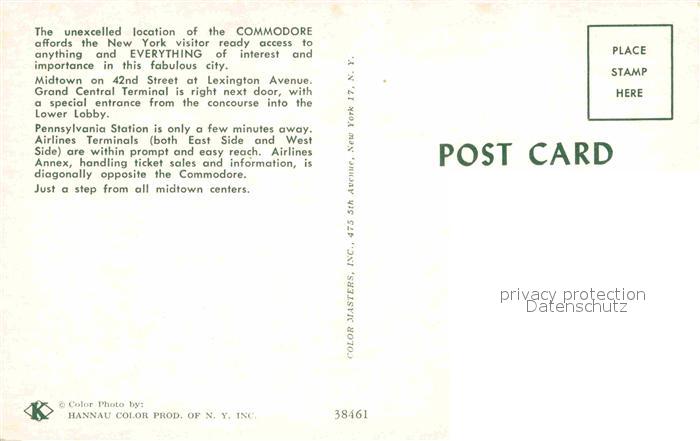 72854865 New York City Hotel Commodore postalisch nicht gelaufen Erhaltung siehe scans [FriedD77] KatCode: 14140340000000