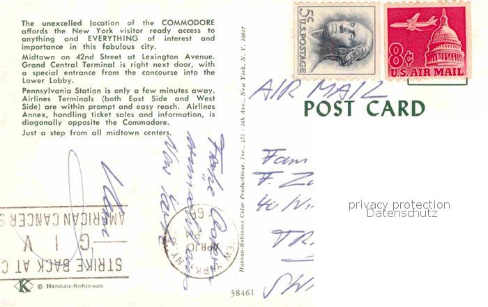 72637174 old postcard New York City Hotel Commodore postalisch gelaufen Erhaltung siehe scans [FriedD77] KatCode: 14140340000000