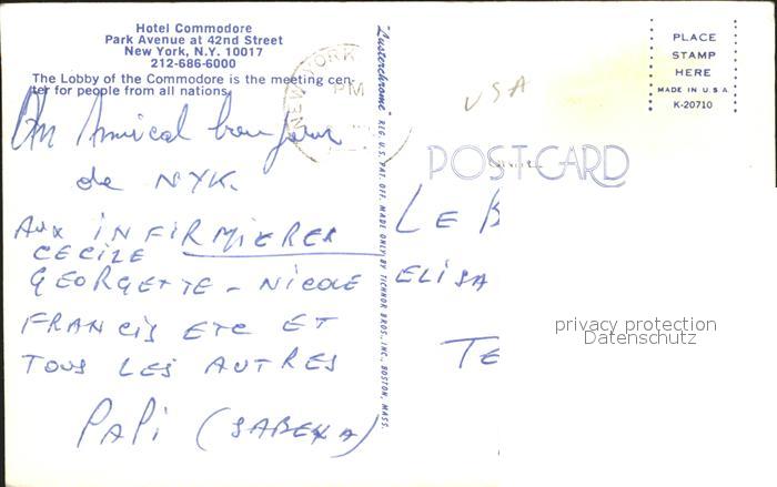 71943115 old postcard New York City Hotel Commodore Lobby postalisch gelaufen Erhaltung siehe scans KatCode: 14140340000000