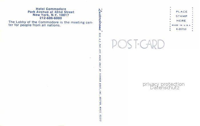 72905622 New York City Hotel Commodore Lobby postalisch nicht gelaufen Erhaltung siehe scans [FriedD77] KatCode: 14140340000000