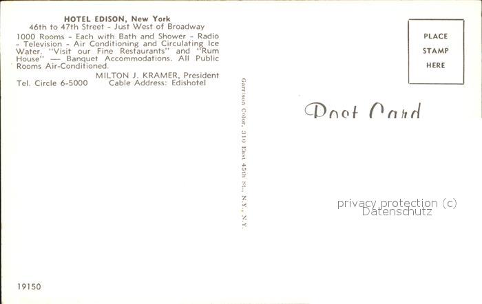 71519944 New York City Hotel Edison postalisch nicht gelaufen Erhaltung siehe scans KatCode: 14140340000000