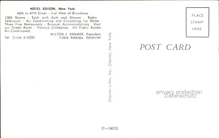 72449767 New York City Hotel Edison postalisch nicht gelaufen Erhaltung siehe scans KatCode: 14140340000000