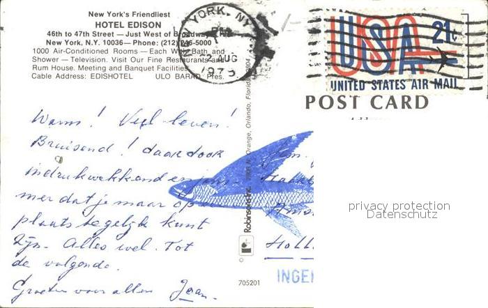 72283297 old postcard New York City Hotel Edison postalisch gelaufen Erhaltung siehe scans KatCode: 14140340000000