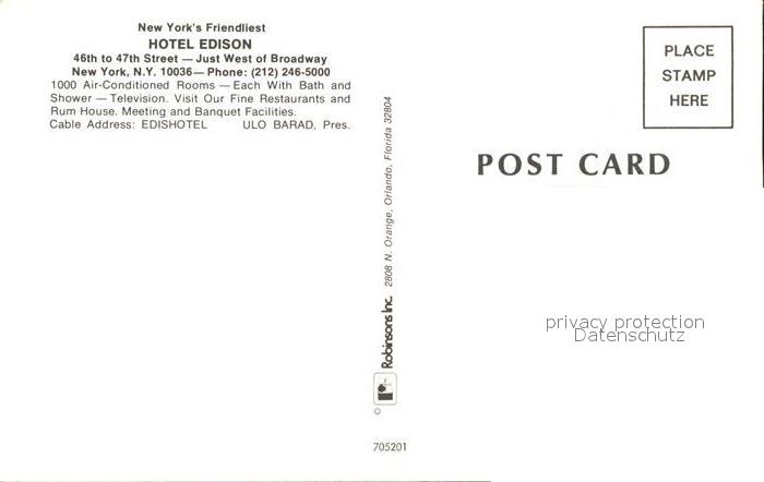 11693278 New York City Hotel Edison at Night postalisch nicht gelaufen Erhaltung siehe scans KatCode: 14140340000000