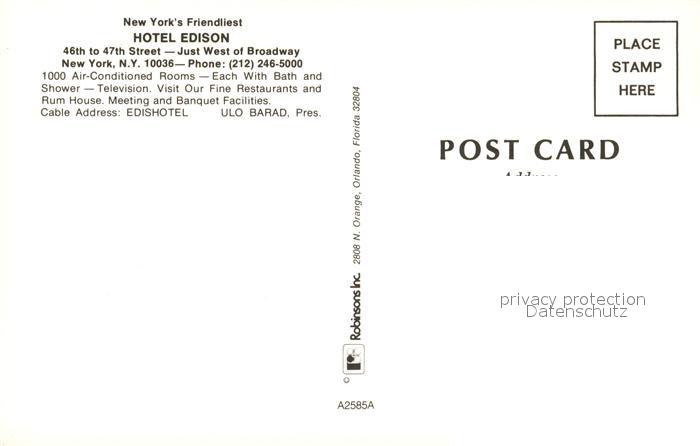 73098356 New York City Hotel Edison postalisch nicht gelaufen Erhaltung siehe scans [KathaD81] KatCode: 14140340000000