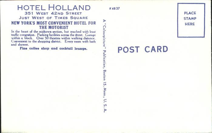 11111778 New York City Hotel Holland postalisch nicht gelaufen KatCode: 14140340000000