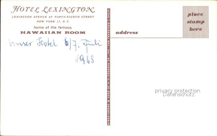72133459 New York City Hotel Lexington postalisch nicht gelaufen Erhaltung siehe scans KatCode: 14140340000000