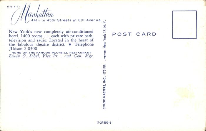 11491365 New York City Hotel Manhatten postalisch nicht gelaufen KatCode: 14140340000000