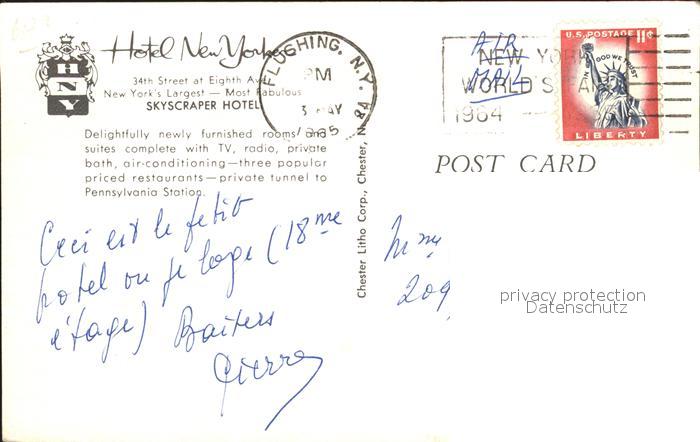 71966175 old postcard New York City Hotel New York postalisch gelaufen Erhaltung siehe scans KatCode: 14140340000000