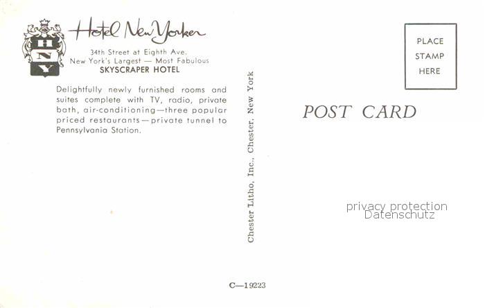 72876380 New York City Hotel New Yorker postalisch nicht gelaufen Erhaltung siehe scans [AndreD76] KatCode: 14140340000000
