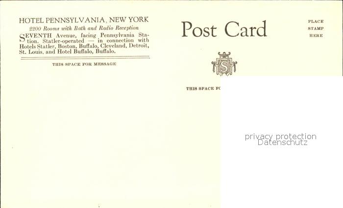 11688688 New York City Hotel Pennsylvania postalisch nicht gelaufen Erhaltung siehe scans KatCode: 14140340000000