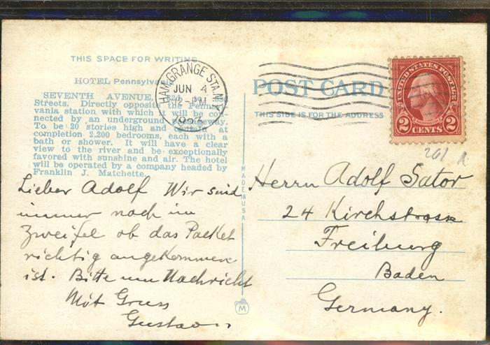 11092891 old postcard New York City Hotel Pennsylvania postalisch gelaufen KatCode: 14140340000000