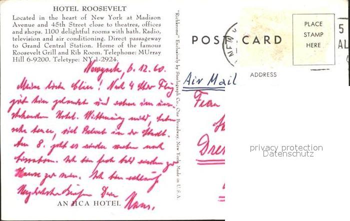 11925230 old postcard New York City Hotel Roosevelt postalisch gelaufen KatCode: 14140340000000