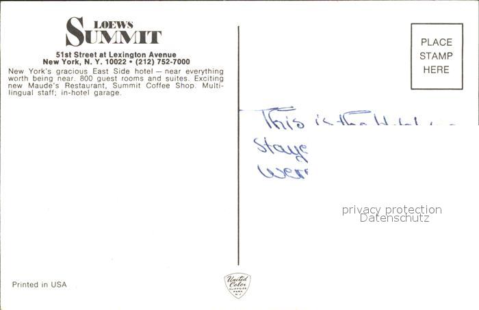 71954781 New York City Hotel Summit postalisch nicht gelaufen Erhaltung siehe scans KatCode: 14140340000000