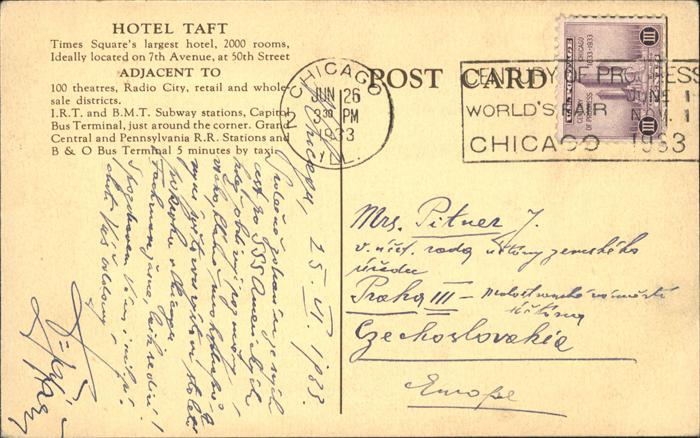 11111783 old postcard New York City Hotel Taft postalisch gelaufen KatCode: 14140340000000