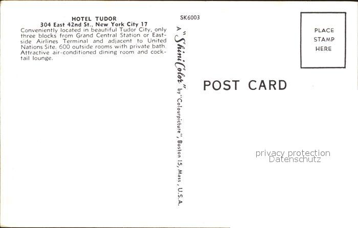 32508134 New York City Hotel Tudor postalisch nicht gelaufen Erhaltung siehe scans KatCode: 14140340000000