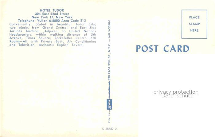 72844517 New York City Hotel Tudor postalisch nicht gelaufen Erhaltung siehe scans [KathaD81] KatCode: 14140340000000