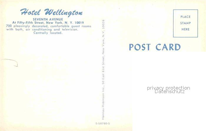 72671415 New York City Hotel Wellington Seventh Avenue postalisch nicht gelaufen Erhaltung siehe scans [WerneD78] KatCode: 14140340000000