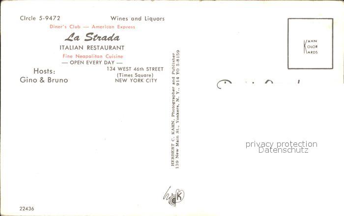 71964683 New York City La Strada Italien Restaurant postalisch nicht gelaufen Erhaltung siehe scans KatCode: 14140340000000