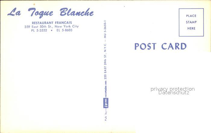 72167430 New York City La Togue Blanche Restaurant Francais Bar postalisch nicht gelaufen Erhaltung siehe scans KatCode: 14140340000000