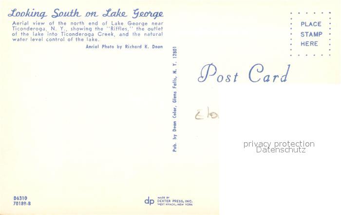73057195 New York City Lake George Aerial view postalisch nicht gelaufen Erhaltung siehe scans [WerneD78] KatCode: 14140340000000