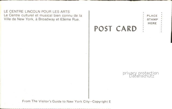 71964725 New York City Le Centre Lincoln pour les Arts postalisch nicht gelaufen Erhaltung siehe scans KatCode: 14140340000000