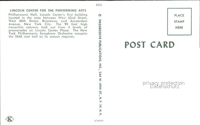 72434879 New York City Lincoln Center postalisch nicht gelaufen Erhaltung siehe scans KatCode: 14140340000000