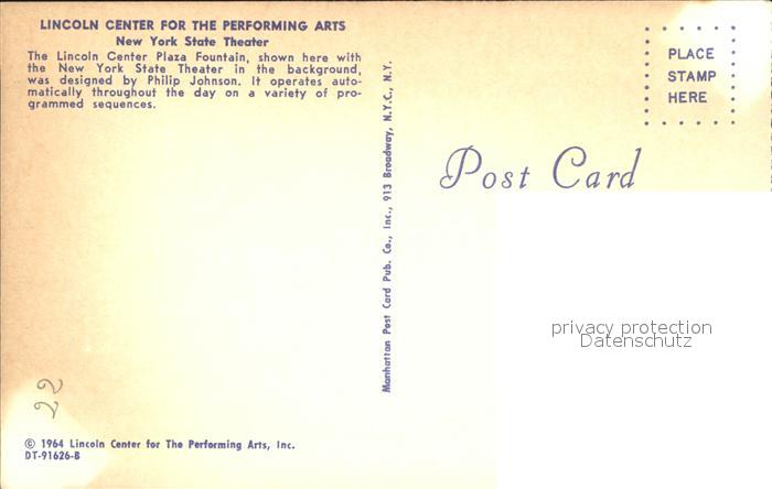 72275038 New York City Lincoln Center New York State Theater postalisch nicht gelaufen Erhaltung siehe scans KatCode: 14140340000000