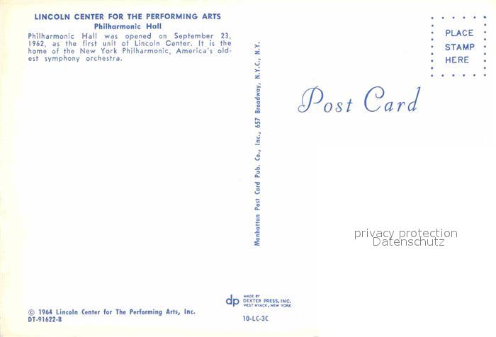 72897242 New York City Lincoln Center Philharmonic Hall postalisch nicht gelaufen Erhaltung siehe scans [AndreD76] KatCode: 14140340000000