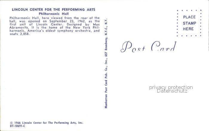 72314063 New York City Lincoln Center Philharmonic Hall postalisch nicht gelaufen Erhaltung siehe scans KatCode: 14140340000000