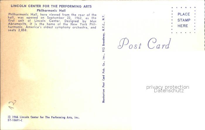 72275042 New York City Lincoln Center Philharmonic Hall postalisch nicht gelaufen Erhaltung siehe scans KatCode: 14140340000000