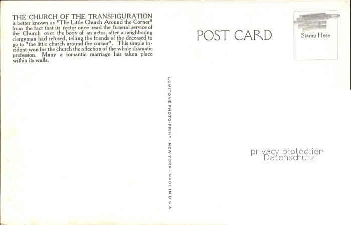 72461443 New York City Little Church around the Corner postalisch nicht gelaufen Erhaltung siehe scans KatCode: 14140340000000
