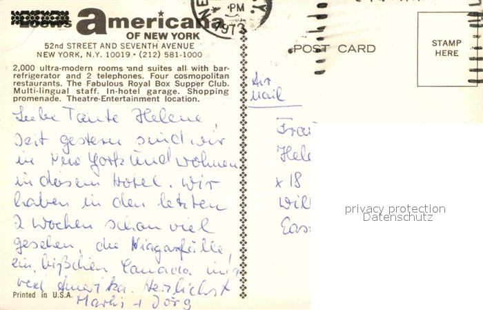 72904666 old postcard New York City Loews Americana Hotel Skyscraper postalisch gelaufen Erhaltung siehe scans [FriedD77] KatCode: 14140340000000