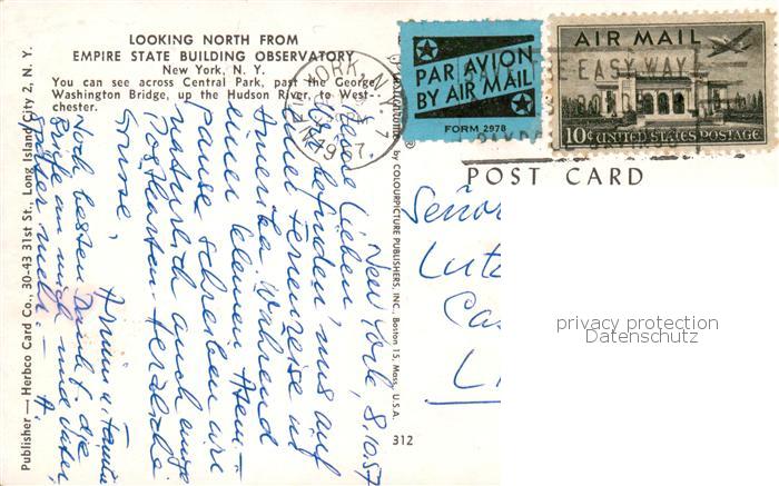 73848336 old postcard New York City Looking from Empire State Building Observatory postalisch gelaufen Erhaltung siehe scans [WerneD78] KatCode: 14140340000000
