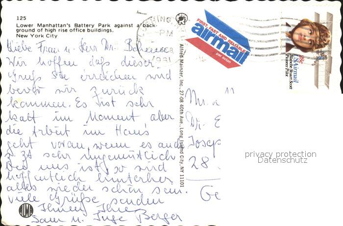 72413105 old postcard New York City Lower Manhattan Battery Park Buerohaeuser postalisch gelaufen Erhaltung siehe scans KatCode: 14140340000000