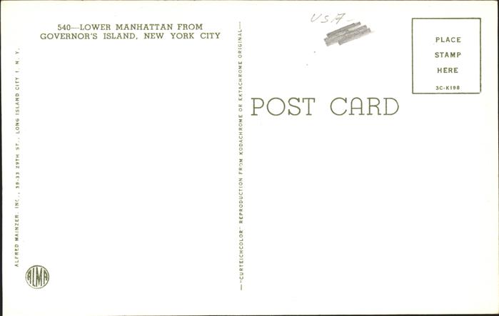 11491452 New York City Lower Manhatten Skyline view from Governor’s Island postalisch nicht gelaufen Erhaltung siehe scans KatCode: 14140340000000