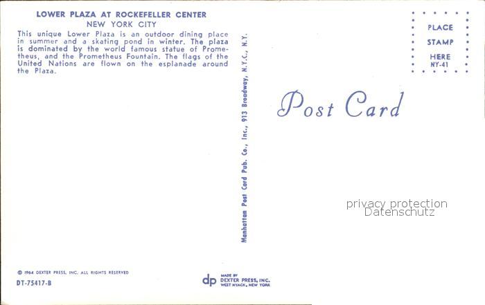 72322894 New York City Lower Plaza at Rockefeller Center postalisch nicht gelaufen Erhaltung siehe scans KatCode: 14140340000000