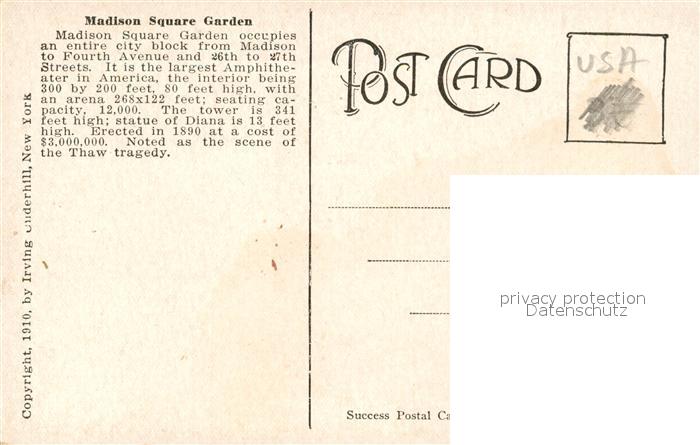 73588829 New York City Madison Square Garden postalisch nicht gelaufen Erhaltung siehe scans [FriedD77] KatCode: 14140340000000